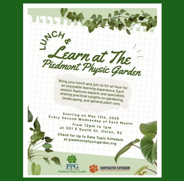 Founded in 2014, the Piedmont Physic Garden (PPG) is a botanical garden in Union, South Carolina, located only one block from our historic downtown. We are also part of the Olde English Tourism District, consisting of seven counties in north central South Carolina. Our garden is home to an expanding collection of ornamental plants and those with historical medicinal uses, many hailing from the Piedmont and Southern Appalachian corridor. Come discover the beauty and wonder of nature through one of our educational programs or garden tours.